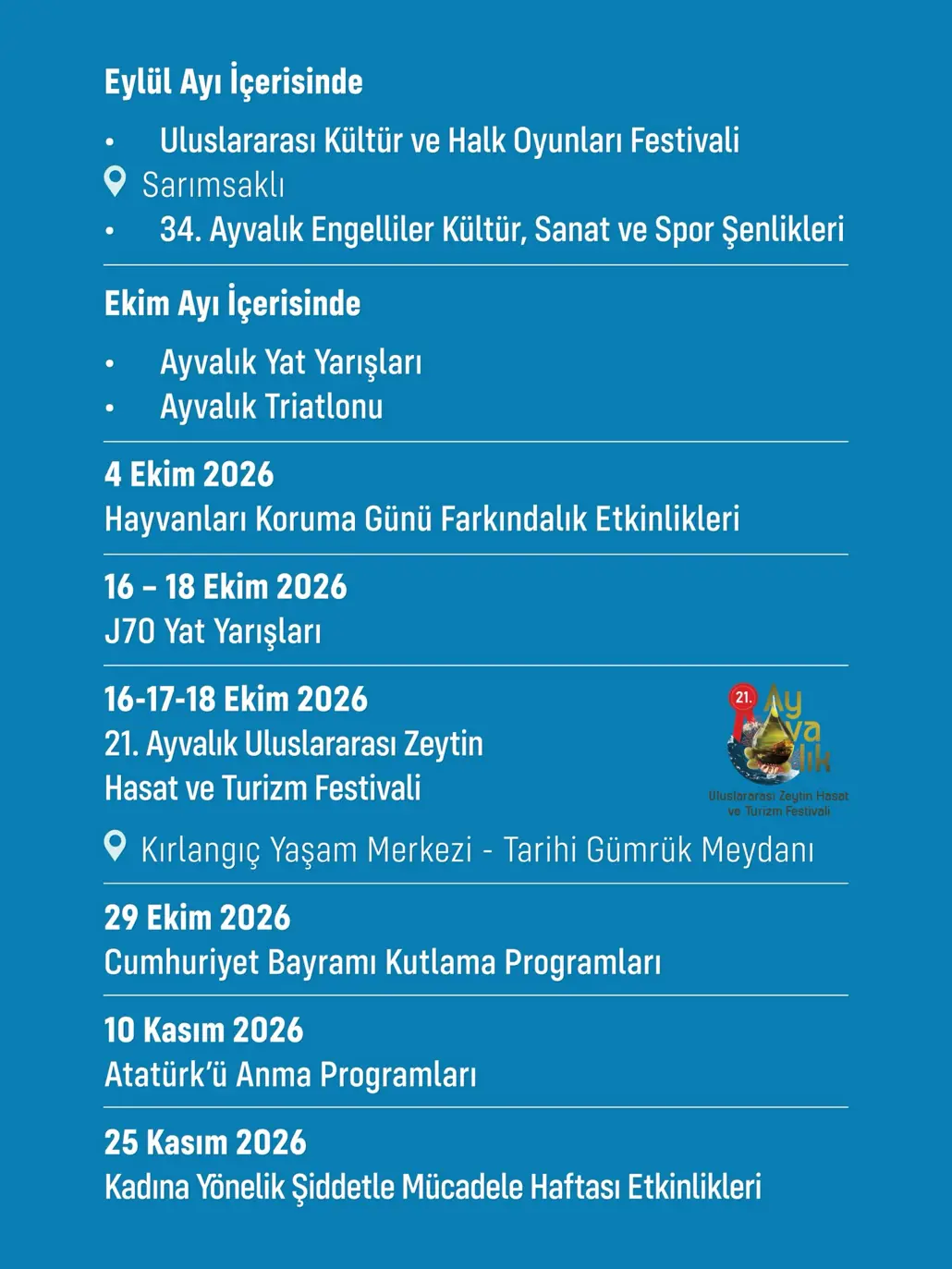 Festival, Kültür, Sanat ve Spor’un Kenti Ayvalık’ta 2026 Yılı Etkinlik Takvimi açıklandı!